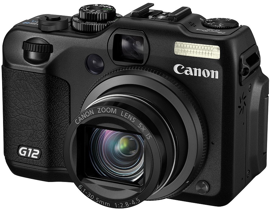 Dotarile modelului PowerShot G12 integreaza un set de lentile wide-angle de 28mm si zoom optic 5x. Camera poate focaliza pana la o distanta de 10mm fata de subiect, de aceea cele mai mici miscari ale fotografului pot afecta negativ calitatea imagini, obtinerea unor fotografii lipsite de blur fara ajutorul unui trepied fiind foarte dificila. Sistemul Hybrid IS compenseaza pentru deplasarea involuntara a camerei sau miscarea unghiului de fotografiere.