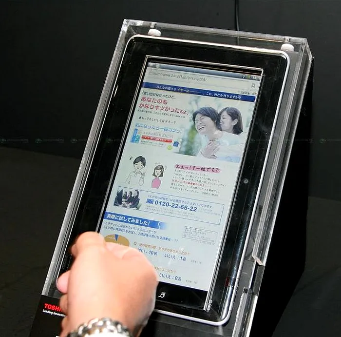 Toshiba si-a adus noua tableta Android la CEATEC 2010, dar surpriza este ca nu vorbim despre Folio 100. Dispozitivul a fost prezentat pentru un demo al serviciului Toshiba Book-Place pentru piata japoneza, dar alte detalii, inclusiv despre tableta insasi, nu se cunosc. Compania a declarat doar ca produsul este un prototip in lucru al unei posibile tablete Android.