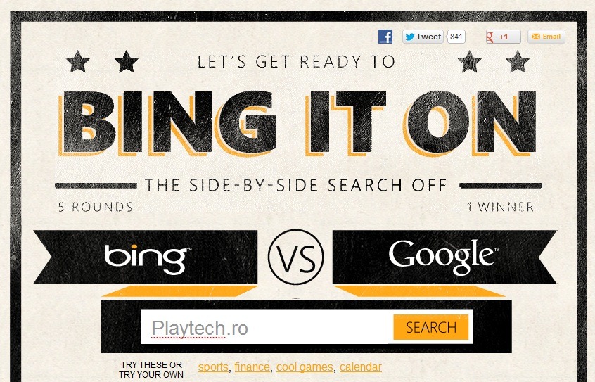 Practic, clipul de mai jos functioneaza ca un preludiu la un site prin care va puteti lamuri de un lucru simplu: ,,Este sau nu, Bing mai bun ca Google.”. Desi pare o idee buna, obisnuinta s-ar putea sa fie de fapt criteriul din cauza caruia niciodata nu vei renunta la Google. ,,It’s time to break de Google habit”, spunea intr-o declaratie Mike Nichols de la Microsoft, prevazand faptul ca si in acest domeniu, obisnuinta este amenintarea lucrurilor noi si mai bune.