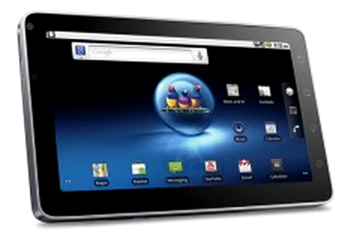 Are un ecran de 7 inci cu o rezolutie de 800 x 480, 512 MB memorie interna, 375 grame, 179 x 119 x 12 mm, sistem de operare Android 2.2 si o autonomie de 5 ore.