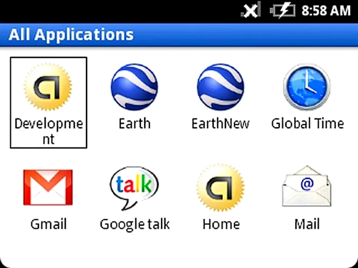 Dezvoltat de catre HTC, primul telefon al celor de la Google, care daca nu ma inseala memoria nu a fost disponibil utilizatorilor obisnuiti niciodata, nu are nici o treaba cu ideea de ecran sensibil la atingere. Ecranul principal nu seamana catusi de putin cu cel pe care l-am cunoscut mai tarziu. Nu exista widget-uri, ci doar un ceas mare si un buton marcat cu Google.  Acesta din urma poate fi folosit pentru a se accesa aplicatii folosind un joystick fizic.