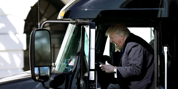 În martie, Trump s-a întâlnit cu Asociația Americană de Transporturi la Casa Albă a vrut, probabil, să fie amuzant, dar, mai degrabă, a părut ridicol. Trump s-a distrat ca un copil mic când s-a urcat într-un camion și a dat de volan.