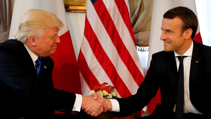 Când președintele francez și-a luat mandatul în primire, Trump a apărut în peisaj, bineînțeles. În orice caz, strângerea de mână a celor doi a fost deliciul întâlnirii. În timp ce Macron părea relaxat și neintimidat de prezența președintelui american, Trump avea ”fălcile încleștate” și dorind să-l intimideze. Că i-a ieșit, că nu i-a ieșit, nu mai contează. Cert este că poza a ajuns virală.