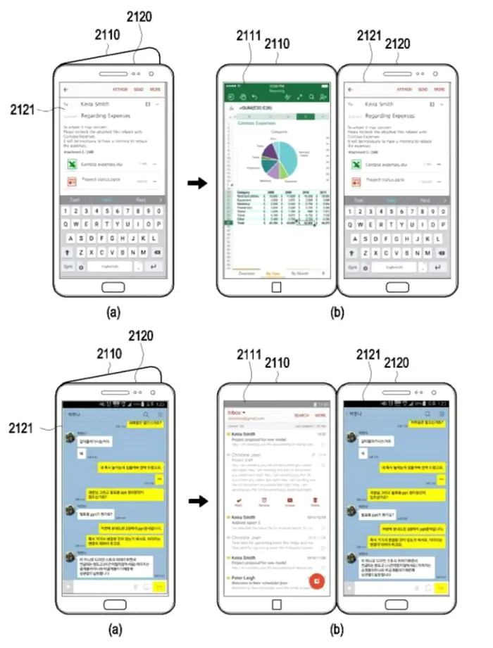 Într-o prezentare făcută de Young Sohn, director de strategie al Samsung, a fost arătat un concept de smartphone al viitorului. Asta se întâmpla în 2013. Conceptul Samsung avea două panouri care se pliau în jurul unei bucăţi centrale, iar culoarea întregului telefon se schimba în funcţie de modul în care acesta era folosit. Acum, au apărut imagini cu ceea ce pare a fi brevetul Samsung pentru un telefon pliabil și este mult prea asemănător cu ceea ce ZTE a anunțat deja.