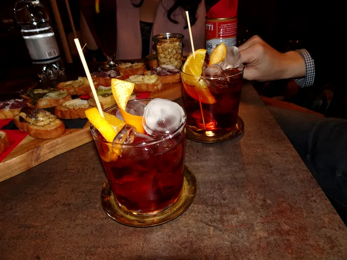 Fără să fie deloc ofensator, barmanul ne-a spus că nu are un meniu predefinit, dar este cât se poate de flexibil și ne prepară cam orice ne trece prin cap. La câteva momente după ce am comandat câte un Negroni, masa s-a umplut de bruschete, alune și alte câteva detalii menite să te ajute să nu te amețești prea ușor.