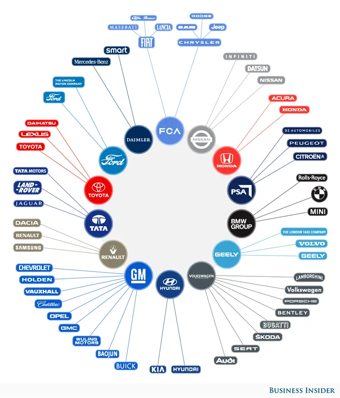 La nivel mondial, industria auto s-a complicat extrem de mult. Mari producători au făcut parteneriate. Unii dețin acțiuni, alții împart modele sau motoare, totul într-o mare nebuloasă auto. Mai ales atunci când se încearcă sintetizarea informațiilor într-un grafic și o hartă.
