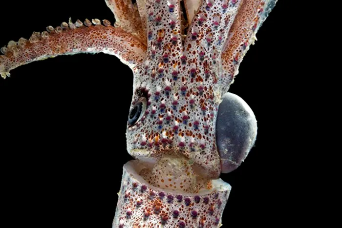 O altă ciudățenie din adâncul Indoneziei este un calmar cu ochii ciudați. El are un ochi mult mai mare decât celălalt. El este „gândit” să înoate, cu ochiul mai mare să privească prin adâncuri după mâncare, în timp ce cu ochiul mai mic să se uite în sus, în cazul în care prădătorii vânează de sus.