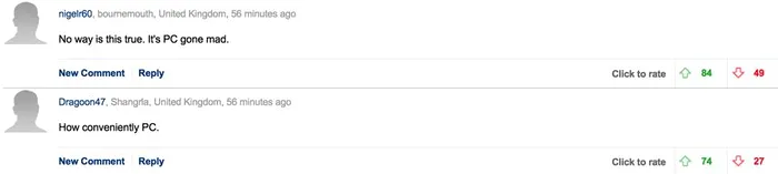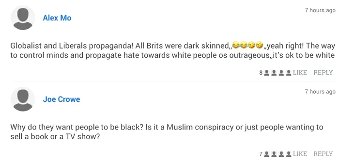 Pentru ei faptul că „o echipă de așa-ziși experți” au dedus că britanicii nu au origini albe este o jignire. Ei nu s-au ferit să-și dea cu părerea, dimpotrivă, au lăsat comentarii articolelor care tratează acest studiu.