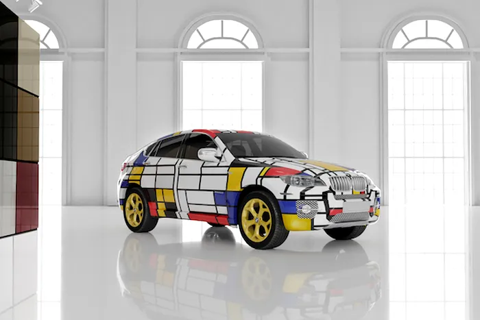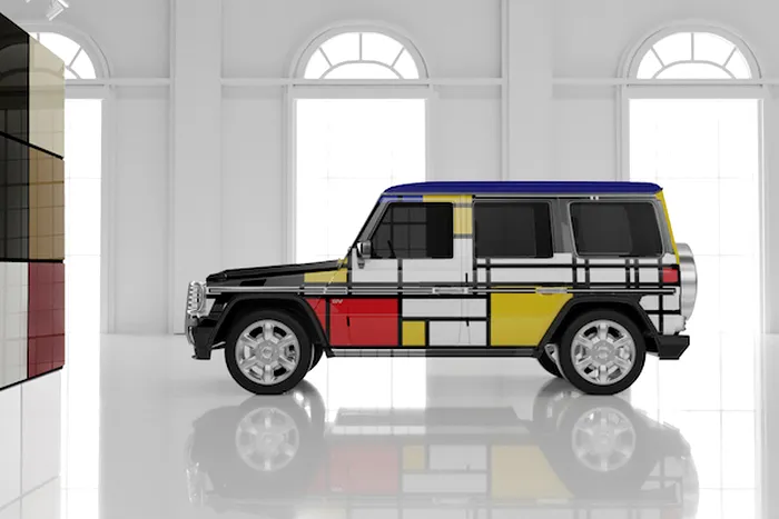La fel a încercat să facă și artisul Vasili Kliukin s-a inspirat din cea mai celebră pictură a lui Mondrian, Compoziție cu Roșu, Galben, Albastru și Negru, și a pictat caroseriile în cel mai bizar mod cu putință.