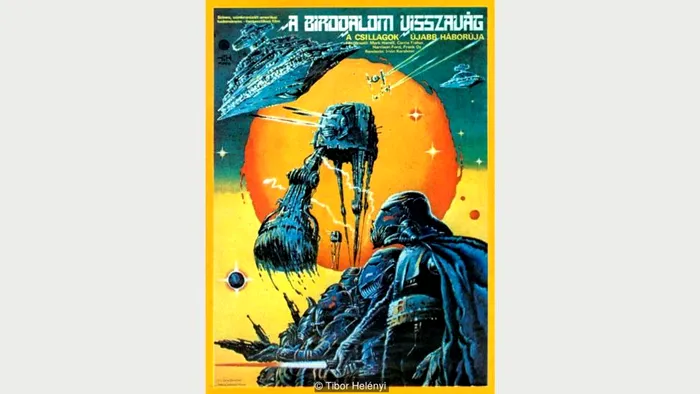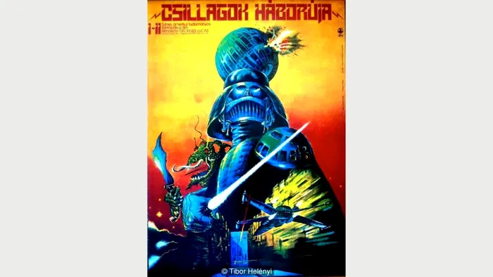 Star Wars a fost lansat în Ungaria pentru prima dată în 1980, la trei ani după debutul din Statele Unite. Helenyi și-a adus propria viziunea, dată cu ajutorul culorilor albastru, portocaliu și roșu, plus alte câteva caracteristici, pe care unii le condamnă, dar alții le admiră. De exemplu, Steaua Morții este distrusă printr-o explozie. Sau șopârla din stânga, cu limbă și ganglioni înfricoșători, care nu există în niciunul dintre filmele din Star Wars.