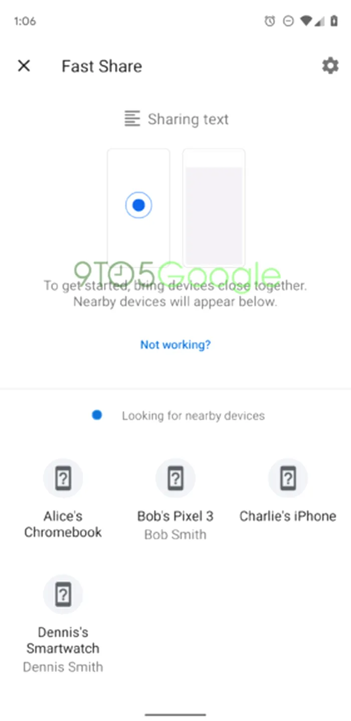 Setup-ul este unul destul de ușor. Trebuie să setezi numele dispozitivului, apoi activezi serviciul și îți va apărea o listă cu dispozitive din jur. Ce pare a fi interesant este că această funcție ar fi compatibilă nu doar cu Android, ci și Chromebook, ceasuri inteligente sau iPhone-uri. Asta înseamnă că ai putea trimite o poză de pe un Android pe un iPhone repede și convenabil (probabil va fi necesară instalarea unei aplicații pe iOS).