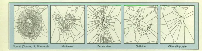 Sub influența diferitelor chimicale, păianjenii au fost destul de afectați și n-au mai reușit să-și realizeze pânzele la fel cum ar fi făcut-o în mod obișnuit.
