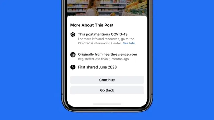 Notificarea va include un link către centrul de informare al coronavirusului al Facebook și va include detalii despre vechimea articolului și când a fost distribuit pentru prima dată. Facebook a lansat o actualizare similar luna trecută, care dă avertismente similare atunci când utilizatorii împărtășesc articole din știri mai vechi.