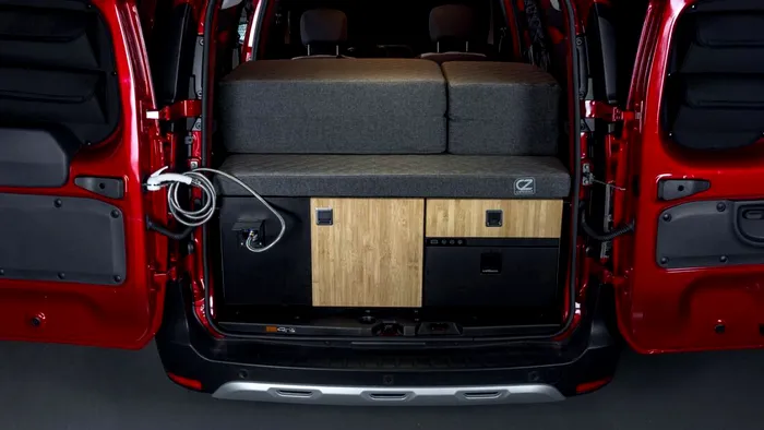 Pentru a servi masa și pentru somn, Camperiz a venit cu o măsuță rabatabilă și două scaune pliante, iar bancheta din spate a fost transformată într-un pat cu dimensiunile 1,90 x 1,20 metri.