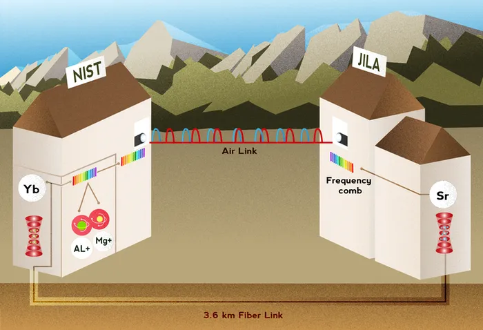 Acum, folosind un nou mod de a lega între ele ceasurile cu lasere ultrarapide, cercetătorii au arătat că diferite tipuri de ceasuri atomice optice pot fi amplasate la câțiva kilometri distanță. Acest lucru este la fel de bun ca măsurătorile anterioare cu perechi de ceasuri identice la câteva sute de metri distanță, dar de aproximativ o sută de ori mai precise decât cele realizate anterior cu ceasuri diferite sau distanțe mari.