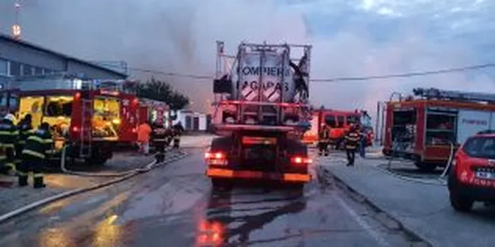 O piață de haine second hand, cuprinsă de flăcări la Brașov. Autoritățile au intervenit de urgență