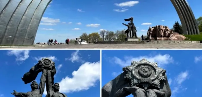 Arcul de titan în formă de curcubeu, care se întinde deasupra monumentului, va rămâne, dar va fi redenumit și va fi colorat în culorile drapelului ucrainean. A fost un cadou de la Rusia. Construit la începutul anilor 1980, este menit să simbolizeze prietenia dintre Rusia și Ucraina. Evident, nu există nicio prietenie acum.