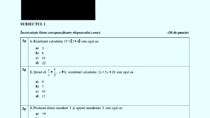 Update miercuri, 21 iunie 2023, ora 11:08. Consultați în galeria foto de mai sus subiectele pe care le-au primit elevii la proba de matematică a Evaluării Naționale 2023. Ministerul Educației va publica baremul de evaluare și notare la ora 15:00.