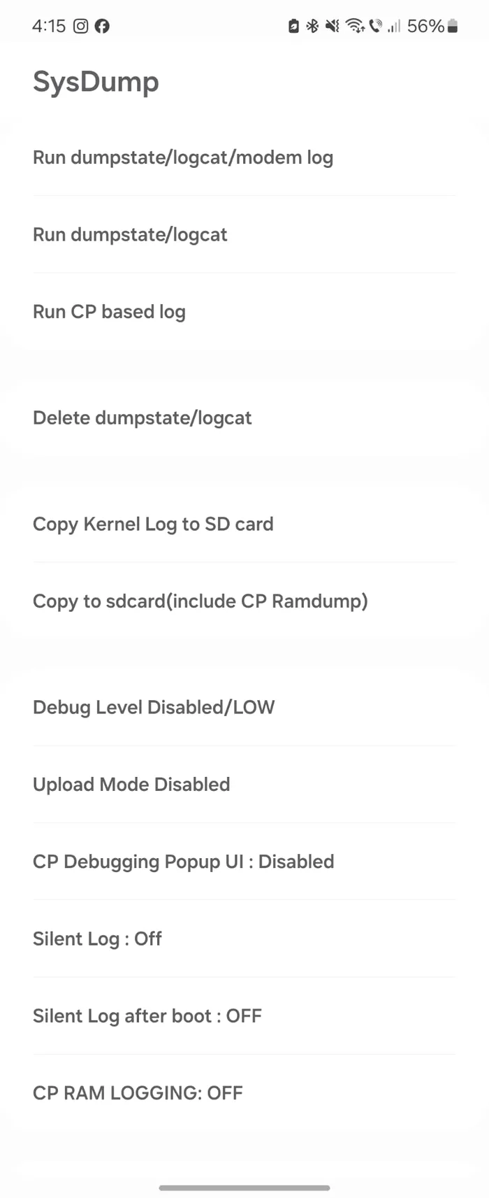 Acest cod deschide meniul SysDump, o unealtă puternică pentru diagnosticare. Aici, opțiunea Delete Dump State îți permite să ștergi datele inutile care încetinesc dispozitivul. Este o metodă simplă și rapidă de a elibera memorie și de a spori viteza telefonului, mai ales dacă observi lag-uri sau întârzieri frecvente.