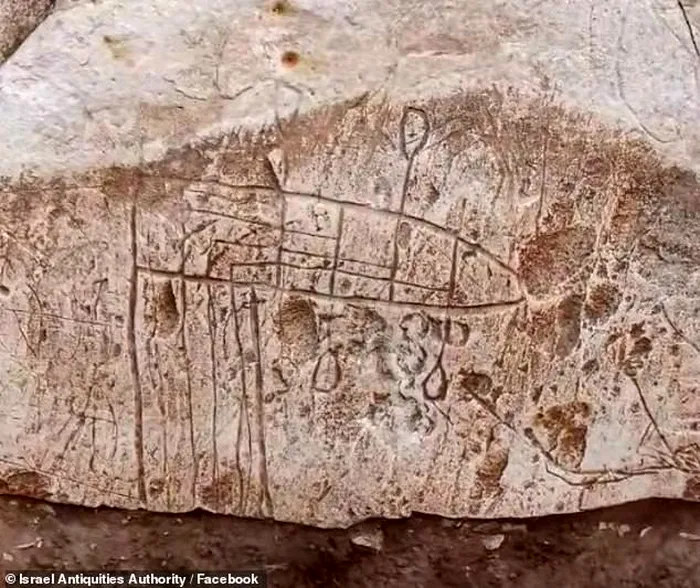 Desenele, care se crede că au aproximativ 1.500 de ani, înfățișează o navă cu două catarge, fără vele, dar cu un mic steag fluturând în partea superioară. Deși nava este un simbol vechi al creștinismului, arheologii cred că aceasta reprezintă fidel barca pe care au călătorit pelerinii.
