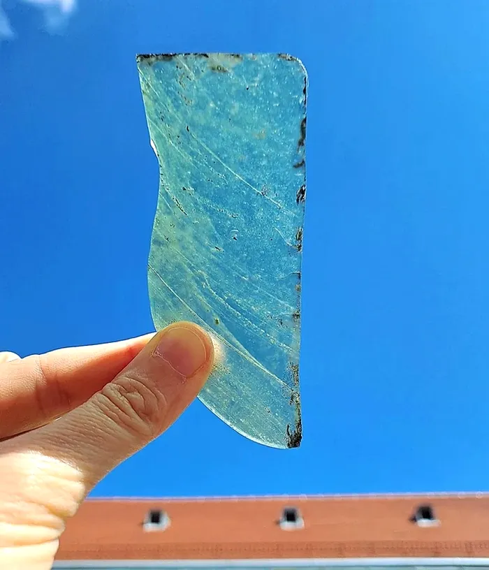 Fragment de sticlă provenit dintr-un geam din perioada romană. (Foto: Facebook / Arheologie MNU Alba Iulia)