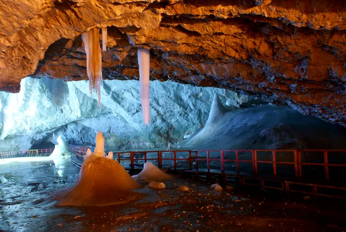 Această masă uriașă de gheață are o frumusețe aparte, cu forme și culori unice create de procesele geologice și climatice care au avut loc de-a lungul mileniilor. Intrarea în peșteră te duce într-o lume fascinantă de stalactite și stalagmite, iar ghețarul oferă o priveliște spectaculoasă, cu straturi de gheață care păstrează amintiri ale trecutului îndepărtat.