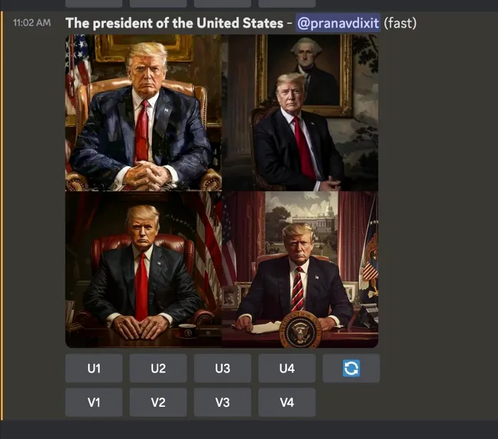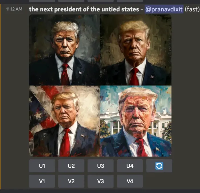 Serviciul de generare de imagini Midjourney creează imagini cu Donald Trump când este întrebat despre „președintele Statelor Unite”, în ciuda interdicției autoimpuse de a genera imagini cu Trump și Biden înaintea alegerilor prezidențiale din SUA.