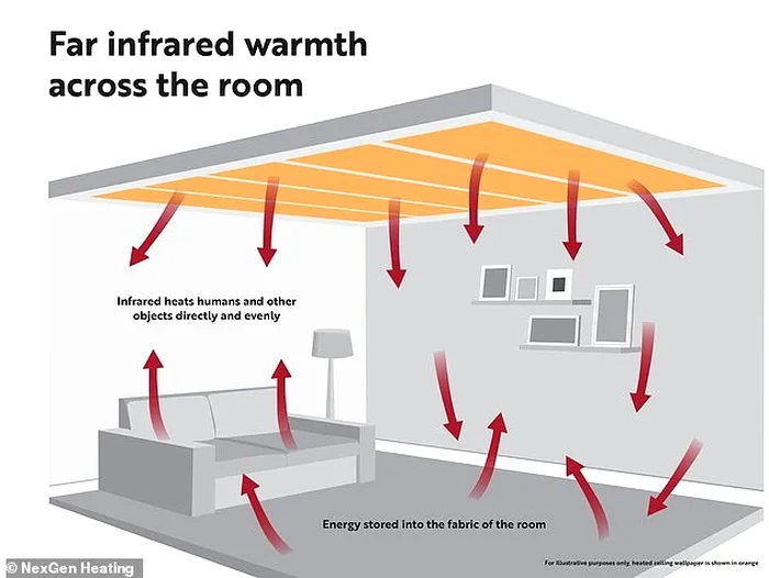 NexGen Heating explică faptul că tapetul lor electric folosește principiul fizic al radiațiilor infraroșii, oferind căldură similară cu cea a razelor solare, dar fără consumul mare de energie specific încălzirii tradiționale. Încălzirea se realizează uniform prin întregul tavan, iar acest lucru permite o distribuție rapidă a căldurii în cameră, eliminând necesitatea de a menține sistemele de încălzire pornite în mod constant.