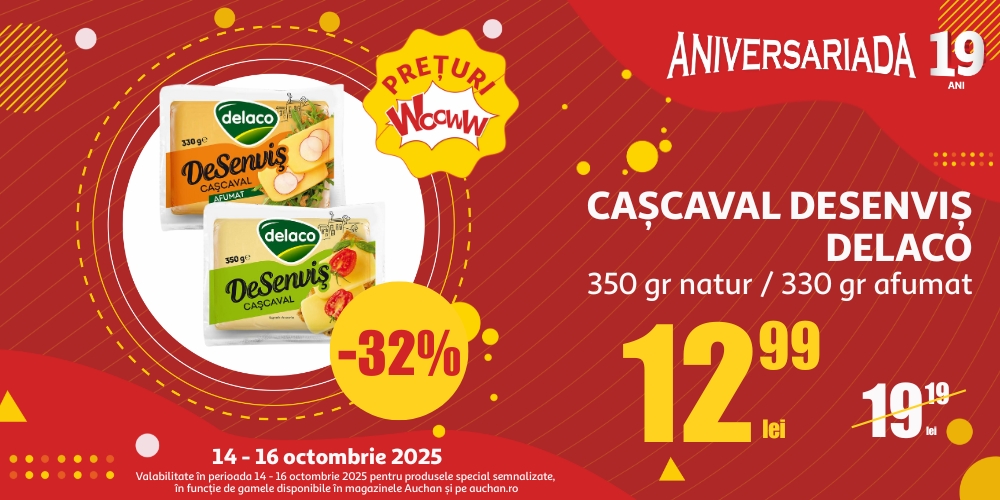 Aniversariada Auchan aduce o gamă extinsă de produse pentru casă și masă, la prețuri avantajoase. De la alimente de bază, lactate și mezeluri, până la produse de curățenie, articole pentru casă sau jucării pentru cei mici, ofertele sunt gândite astfel încât să aducă economii reale familiilor.