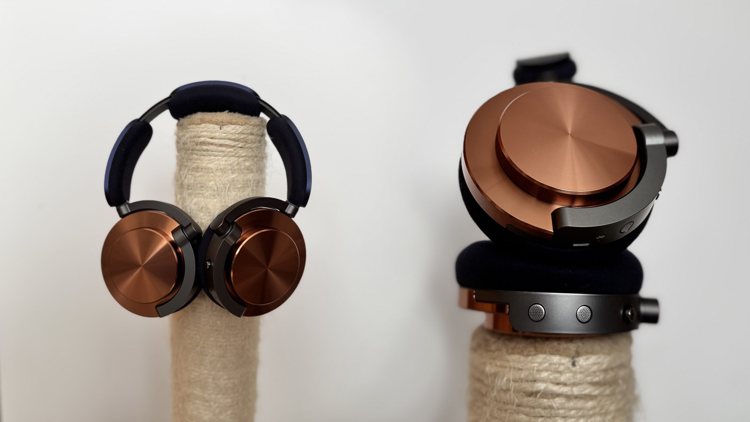 În teorie, ideea de căști ”ostentative” te poate duce cu gândul la ceva greu de purtat. Totuși, OnTrac demonstrează că poți avea un design voluminos și industrial, fără ca asta să compromită ergonomia. În momentul în care le scoți din cutie, primești un sentiment de soliditate: brațele metalice, cupele mari și componentele mecanice vizibile amintesc de renumele Dyson, cunoscut pentru aspiratoare cu aspect aparte și soluții de inginerie neobișnuite. Varianta Copper CNC, pe care am testat-o, vine cu accente metalice lucioase, combinate cu un albastru închis al pernuțelor interioare. Însă, dacă nu-ți place această combinație, poți alege dintre mai multe seturi de capace și cupe, care se atașează și se rotesc pentru fixare cu mare ușurință.