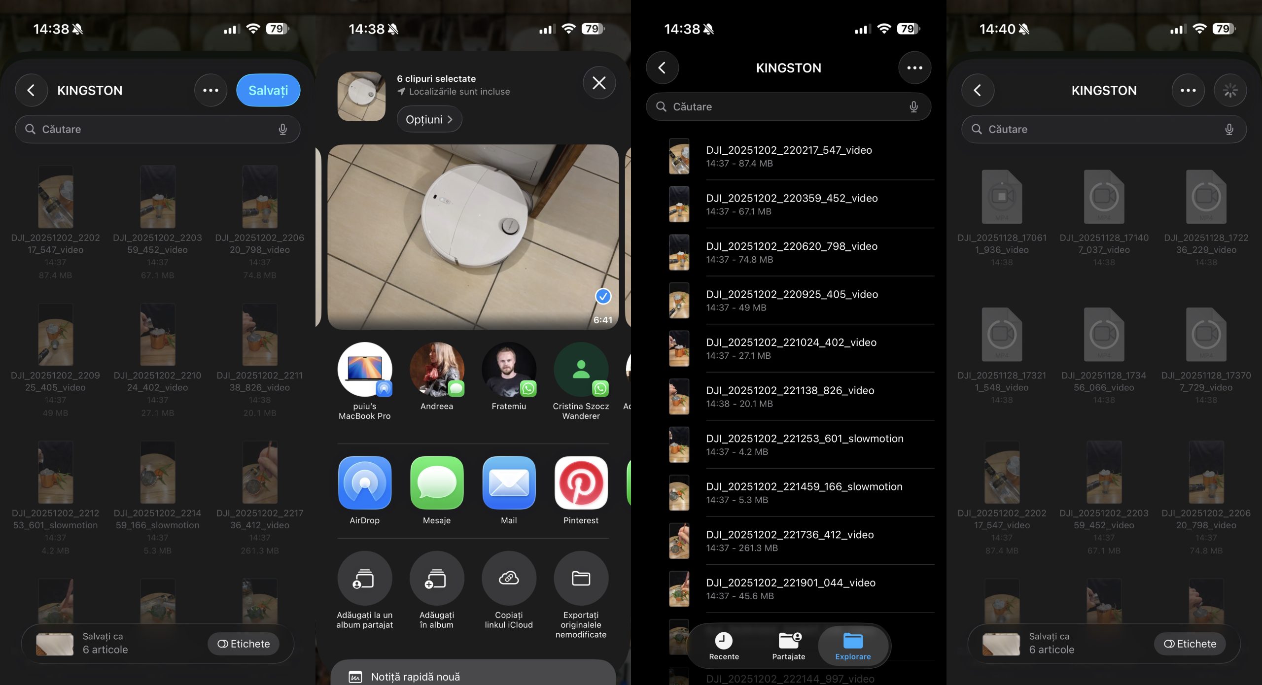 Deși majoritatea telefoanelor moderne de top au ajuns să filmeze 4K la 60 de cadre pe secundă, producători de smartphone-uri precum Apple sau Samsung încă mai comercializează terminale cu doar 256GB memorie internă. În mod evident, acel spațiu se umple incredibil de rapid, iar dacă nu te simți confortabil să-ți urci toate datele personale în Cloud, opțiunile unui transfer rapid în deplasare sunt foarte limitate. Aici intră în ecuație micuțul gadget de la Kingston. În aproximativ un minut am transferat 10GB de clipuri video 4K de pe iPhone Air și în secunda doi le-am putut șterge pentru a câștiga niște spațiu. Nu a fost nevoie să instalez nicio aplicație suplimentară și nici să parcurg vreun proces de formatare. Totul a funcționat direct din cutie. Ca referință, stickul vine preformatat exFAT, un format perfect pentru fișiere mari indiferent de platformă.