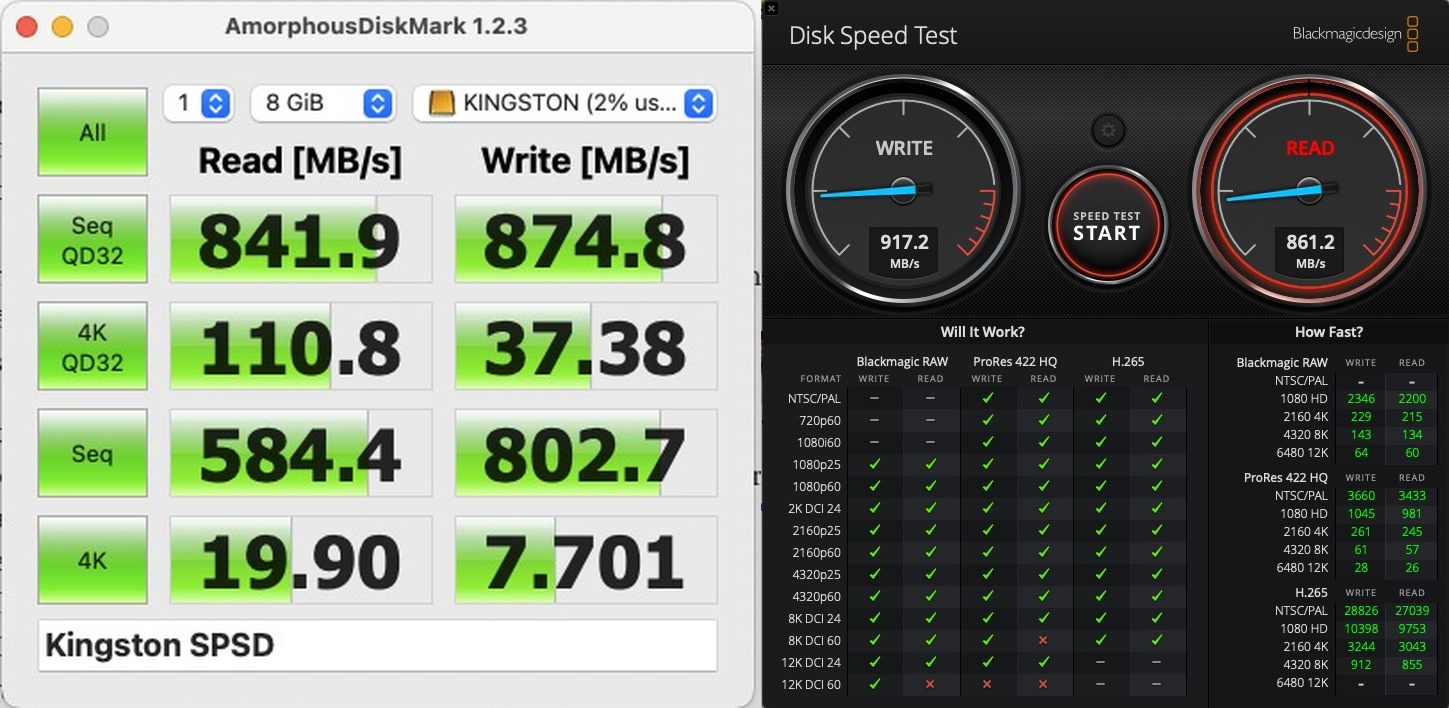 Kingston Dual Portable Solid-State Drive în benchmarkuri pe Mac