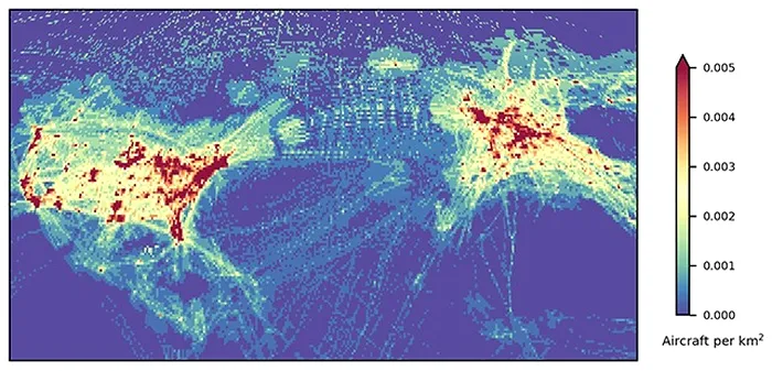 Cercetătorii au urmărit densitatea traficului aerian din întreaga lume. (Wright și colab., Rapoarte științifice, 2025)