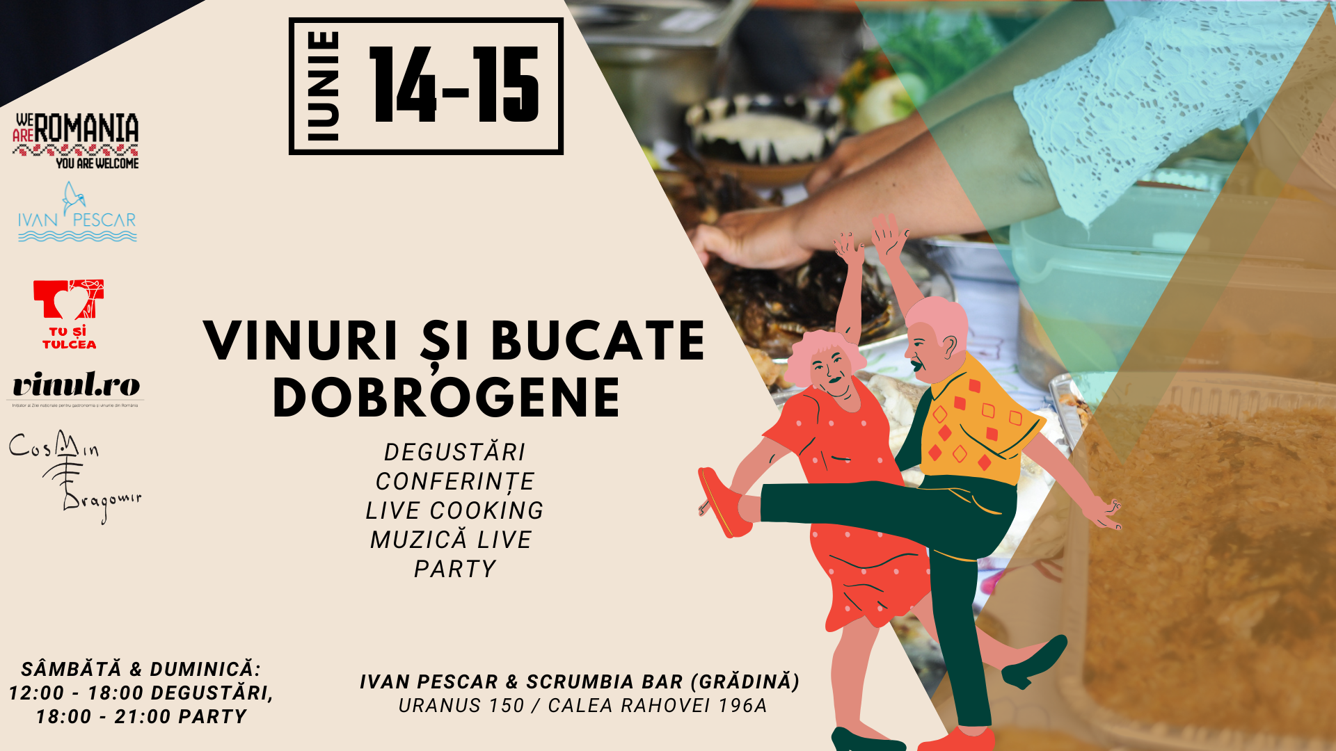 Pe 14 și 15 iunie, în grădina restaurantului Ivan Pescar & Scrumbia Bar din București, vei avea parte de o ediție specială a târgului „Vinuri și bucate dobrogene”. Vei putea degusta vinuri locale, vei asista la sesiuni de live cooking cu borș pescăresc, mititei de pește și pârjoale lipovenești și vei putea achiziționa produse tradiționale pentru acasă. Sâmbătă, 14 iunie, este programată și o conferință despre Delta Dunării ca destinație gastronomică și turistică, urmată de muzică live și DJ party, în timp ce duminică se continuă cu degustările și activitățile în aer liber.