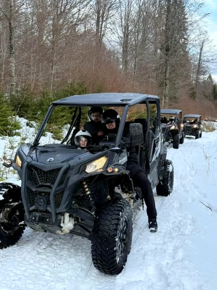 Familia s-a bucurat din plin de farmecul sezonului rece, explorând zonele montane cu ajutorul unor mașini de teren. Imaginile surprinse arată momente pline de energie și entuziasm, în care plimbările prin zăpadă s-au transformat în adevărate aventuri. În descrierea postării sale, Elena Udrea a scris: „Explore the Carpathian garden! O plimbare transformată într-o palpitantă și de neuitat aventură!”, reluând astfel sloganul care a marcat o etapă importantă a carierei sale publice.