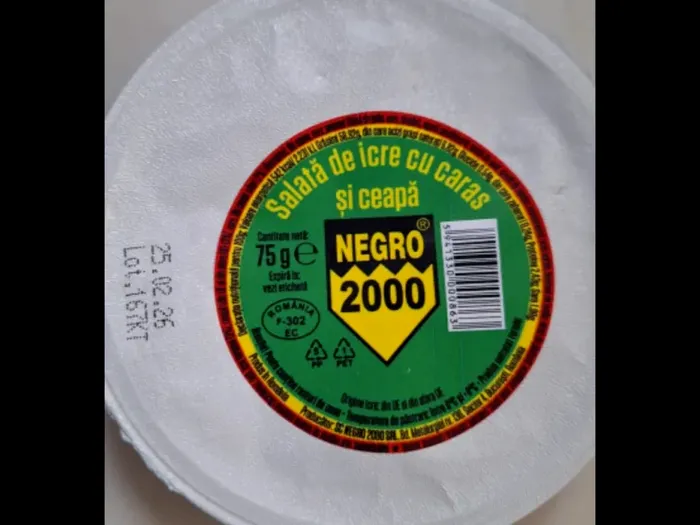 Potrivit informațiilor transmise de autorități, producătorul SC Negro 2000 SRL a inițiat procedura de rechemare pentru produsul „Salată de icre cu caras și ceapă” de 75 de grame. Lotul vizat este identificat cu numărul 167KT, iar data de expirare înscrisă pe ambalaj este 25 februarie 2026. Decizia de retragere a fost luată preventiv, imediat după confirmarea contaminării.