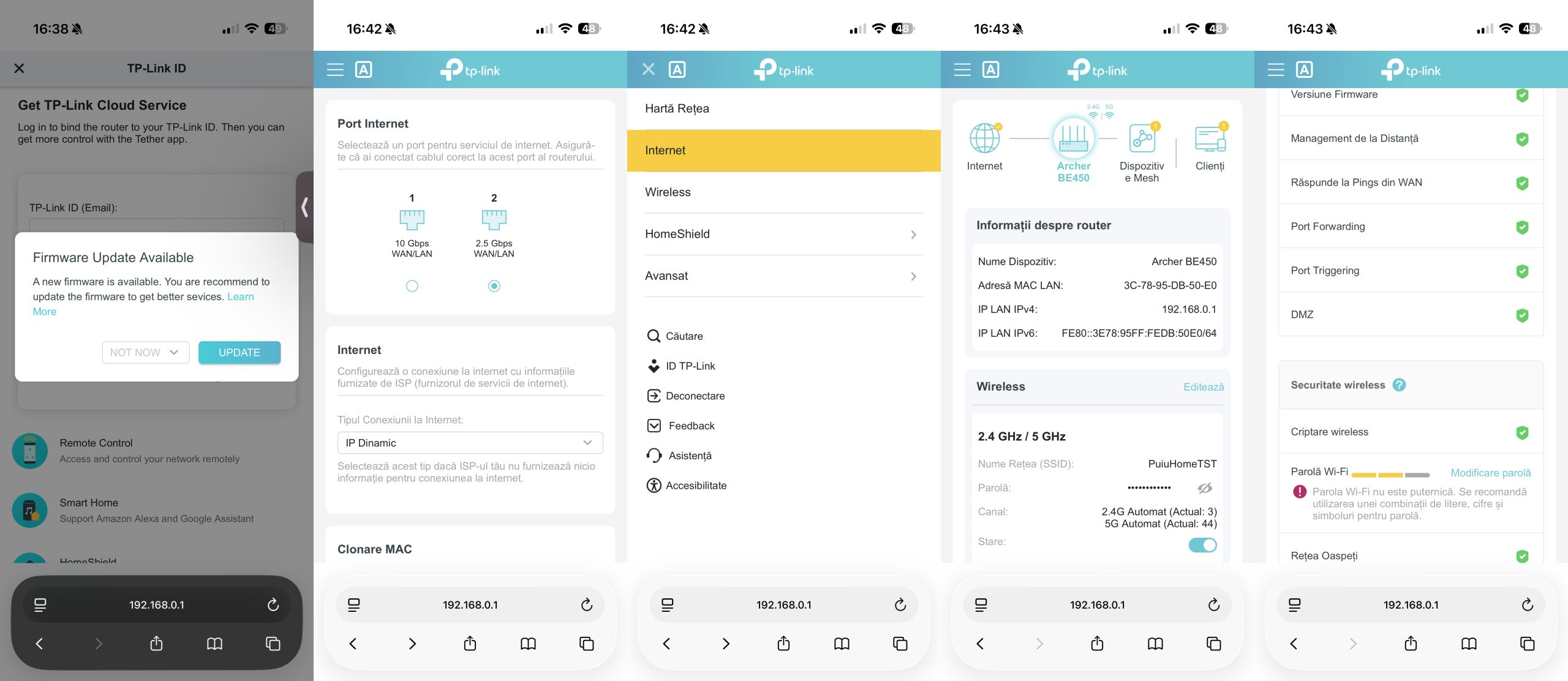 Un detaliu pe care ajungi să-l apreciezi repede este zona de mentenanță și update. Firmware update-urile sunt prezentate clar, iar faptul că apar prompturi vizibile pentru actualizări te ajută să nu rămâi în urmă cu patch-urile de securitate. Într-un produs care se vinde inclusiv pe ideea de protecție, ritmul actualizărilor și ușurința cu care le aplici contează la fel de mult ca viteza brută.