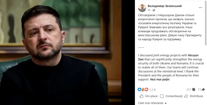Într-o postare publicată pe Facebook, Volodimir Zelenski a precizat că dialogul cu șeful statului român a vizat inițiative energetice care ar putea avea un impact semnificativ asupra stabilității energetice din regiune. Potrivit acestuia, astfel de proiecte ar contribui atât la întărirea securității energetice a Ucrainei, cât și a României, într-un context regional marcat de provocări majore.