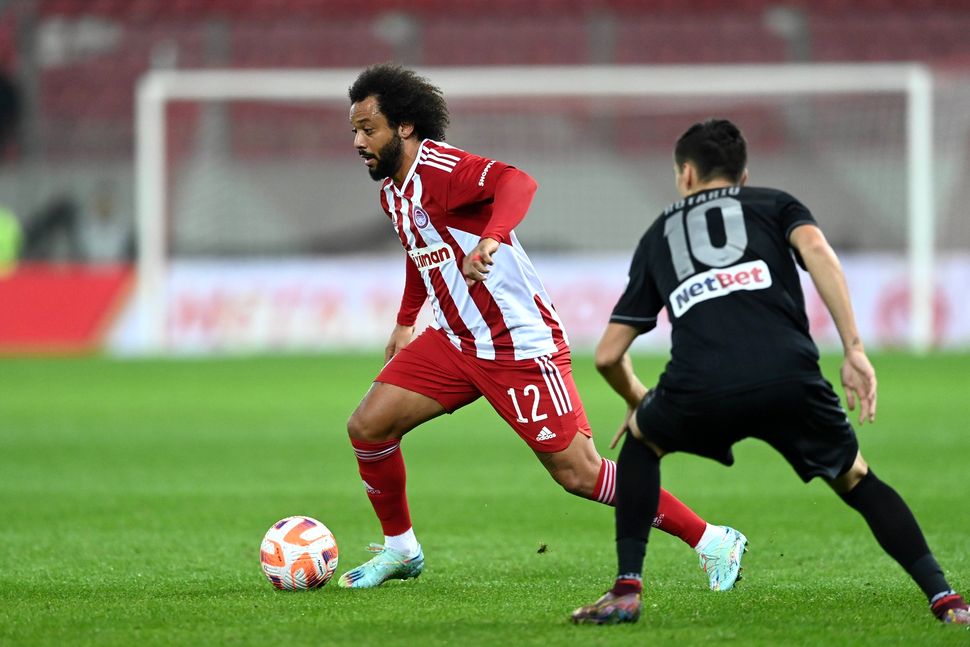 Griechenland Fußball Pokal - Kypello Elladas Saison 2022-2023 Giorgos Karaiskakis Stadion Piräus, 15.12.2022 Olympiakos Piräus - Atromitos Athen Marcelo L, Piräus am Ball gegen Dorin Rotariu R, Athen Olympiakos Piräus - Atromitos Athen *** Greece Football Cup Kypello Elladas season 2022 2023 Giorgos Karaiskakis Stadium Piraeus, 15 12 2022 Olympiakos Piraeus Atromitos Athens Marcelo L, Piraeus on the ball against Dorin Rotariu R, Athens Olympiakos Piraeus Atromitos Athens ANE5758028,Image: 745198303, License: Rights-managed, Restrictions: PUBLICATIONxNOTxINxGRE, Credit images as "Profimedia/ IMAGO", Model Release: no, Credit line: Giorgos Mathaios / Eurokinissi / imago sportfotodienst / Profimedia