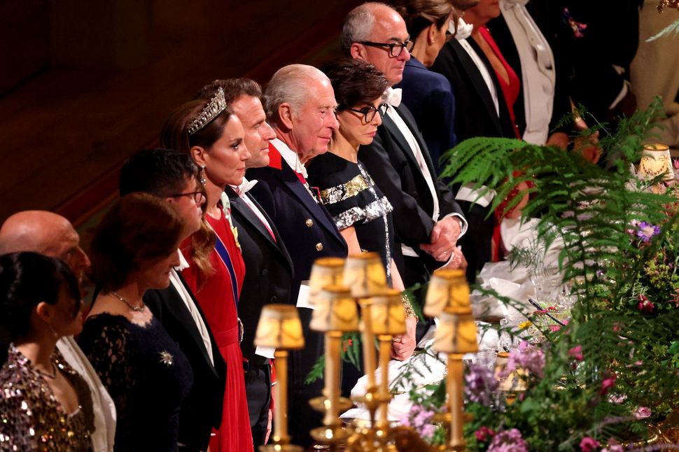 Britain's Catherine, Princess of Wales (C-L), France's President Emmanuel Macron (C) and Britain's King Charles III (C-R) attend a State Banquet at Windsor Castle, west of London, on July 8, 2025, on the first day of a three-day state visit of French President to Britain. - French President Emmanuel Macron began a three-day state visit to Britain on Tuesday, which saw him address parliament and try to rekindle a purportedly warm relationship with King Charles III.//04SIPA_SIPA0477/Credit:LUDOVIC MARIN-Pool/SIPA/2507090554,Image: 1019844633, License: Rights-managed, Restrictions: , Model Release: no, Credit line: LUDOVIC MARIN-Pool / Sipa Press / Profimedia