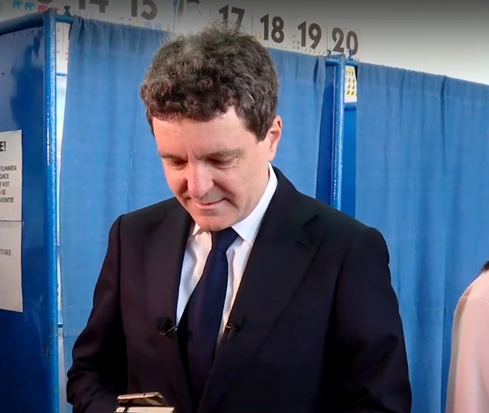 Nicusor Dan, insotit de partenera sa, la sectia de votare