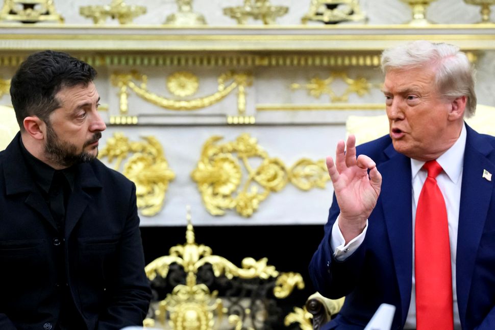 Ukrainian President Volodymyr Zelensky and US President Donald Trump participate in a meeting in the Oval Office of the White House in Washington, DC, on August 18, 2025. European leaders join Ukrainian President Volodymyr Zelensky in talks with US President Donald Trump on August 18, as they try to find a way to end Russia's offensive. The leaders heading to Washington on Monday to appear alongside Zelensky call themselves the "coalition of the willing.",Image: 1030140314, License: Rights-managed, Restrictions: , Model Release: no, Credit line: Mandel NGAN / AFP / Profimedia