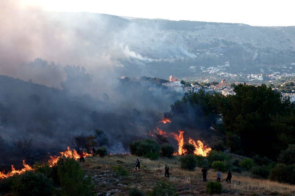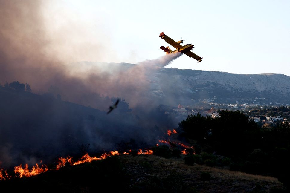 CHIOS, GREECE - JUNE 22: Smoke rises as firefighting teams respond the wildfire that broke out in Chios, Greece on June 22, 2025. Dimitris Tosidis / Anadolu/ABACAPRESS.COM,Image: 1014082244, License: Rights-managed, Restrictions: , Model Release: no, Credit line: AA/ABACA / Abaca Press / Profimedia