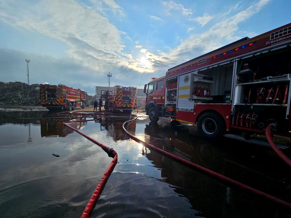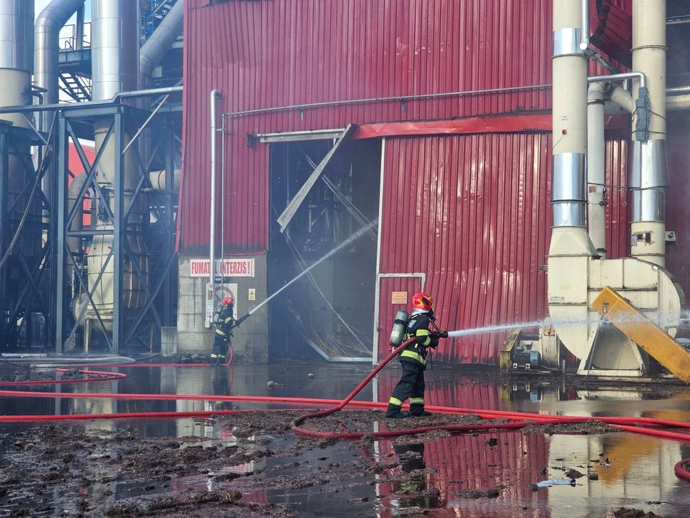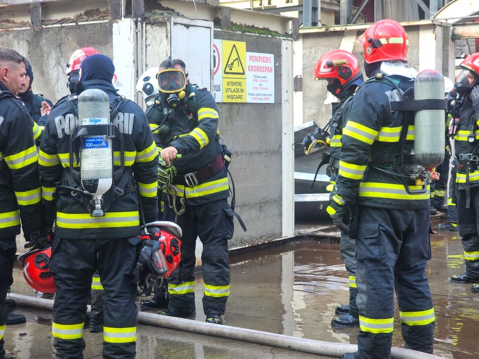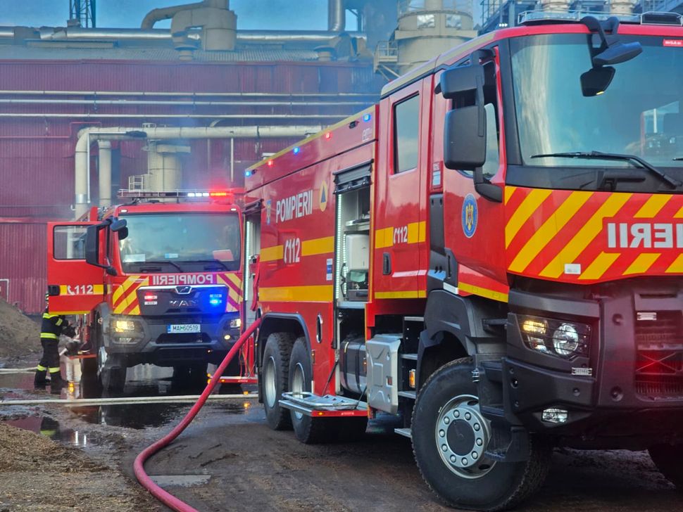 Pompierii ISU Alba au acționat, după ce s-au auzit două explozii și a porn it un incendiu, la fabrica din Sebeș (Sursă foto: ISU Alba)
