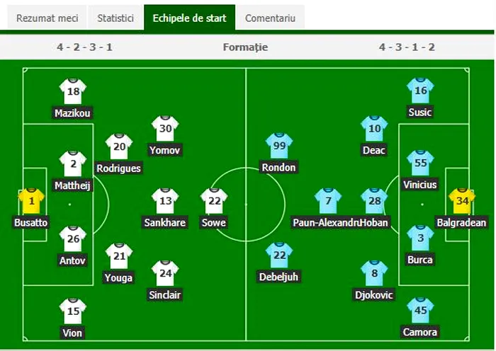 Min 31: Păun şutează din poziţie bună, dar execuţia sa nu are suficientă forţă. Busatto reţine.