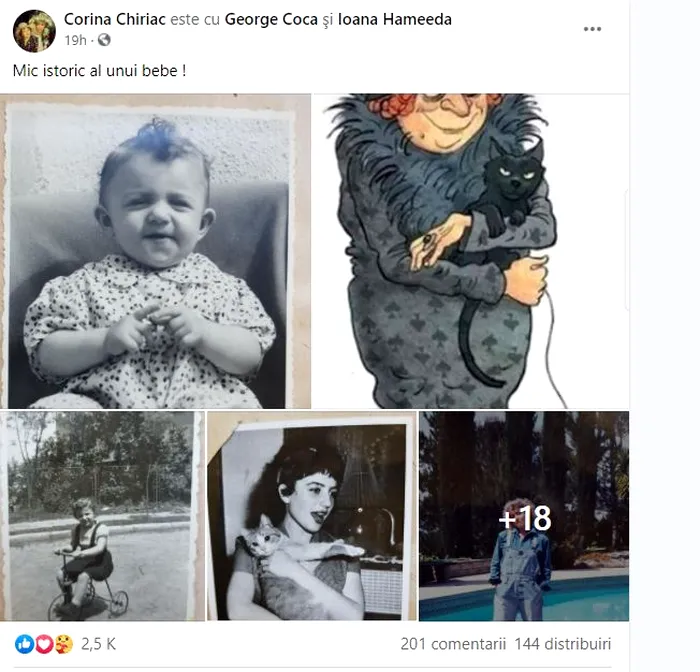 Corina Chiriac a publicat un colaj cu imagini surprinse de-a lungul vieții sale, de când era copil și până acum