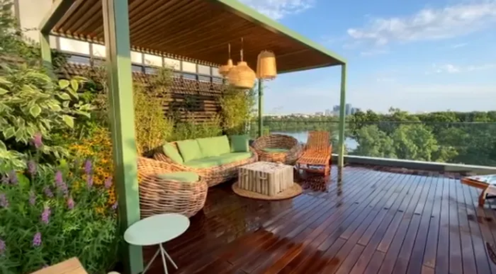 Este și cazul Deliei, în vârstă de 38 de ani, al cărei penthouse de 1,4 milioane de euro fascinează și la ora actuală. Recent, artista a făcut un tur al terasei, filmând decorul și se poate observa că și-a schimbat total zona de relaxare, ea fiind mult mai extinsă și mult mai confortabilă. Piscina de pe acoperiș este înconjurată de fotolii, hamace, canapele de ratan, iar foișorul e plin de verdeață și măsuța și candelabrele se încadrează perfect.