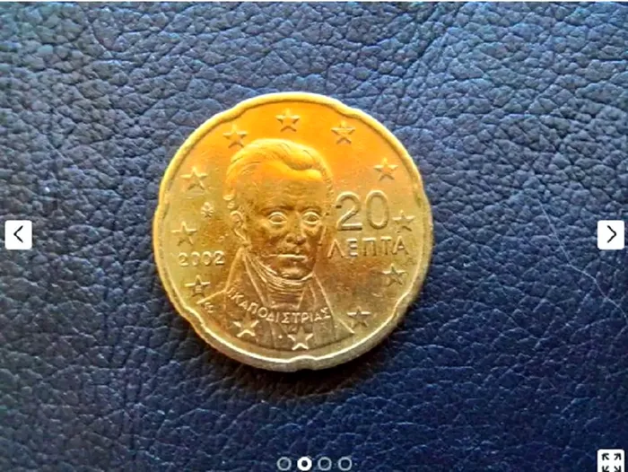 „Vând monedă rară de colecție 20 de cenți Grecia an 2002 cu E în star. Este o monedă cu ușor defect de batere pe avers, deosebită, care se află în stare foarte bună de păstrare. Prețul este de 400 euro ușor discutabil cu predare personală în București.