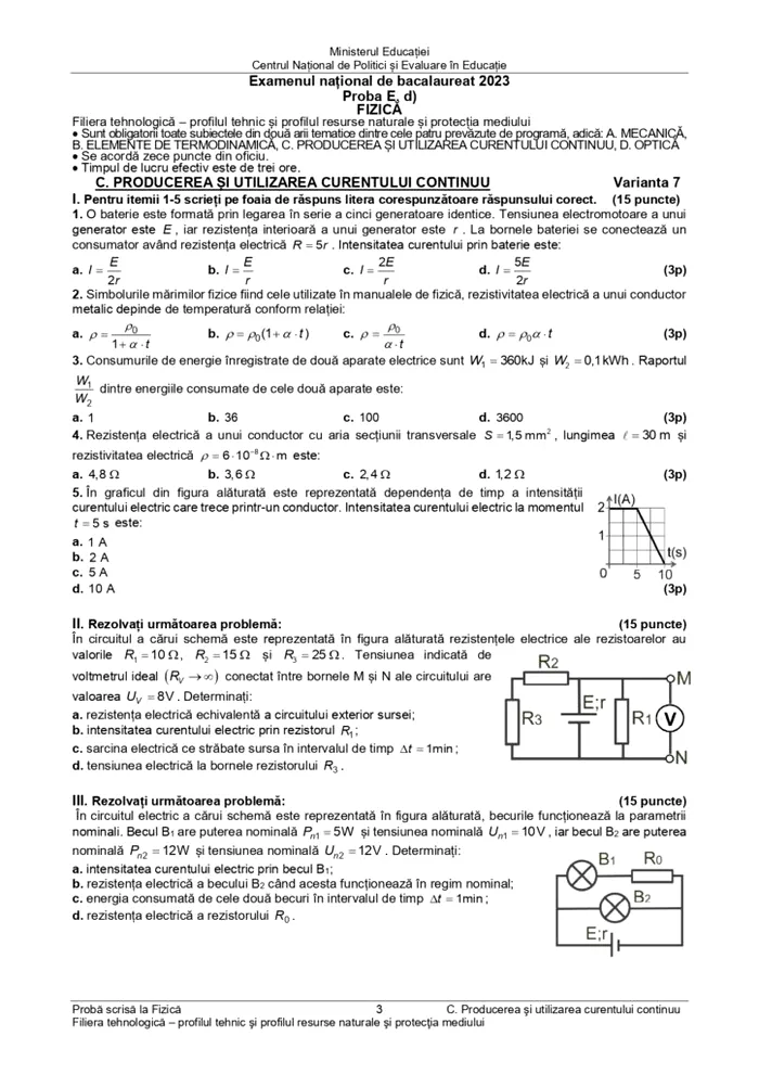 • 17 august 2023: Proba obligatorie a profilului – proba E.c) – proba scrisă