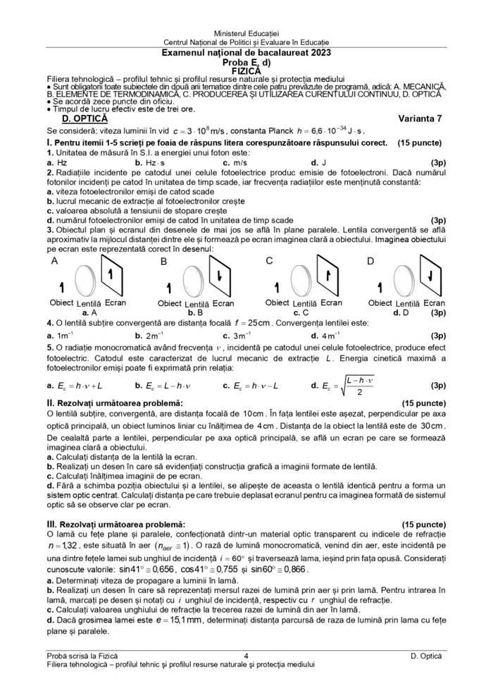 • 18 august 2023: Proba la alegere a profilului și specializării – proba E.d) – proba scrisă